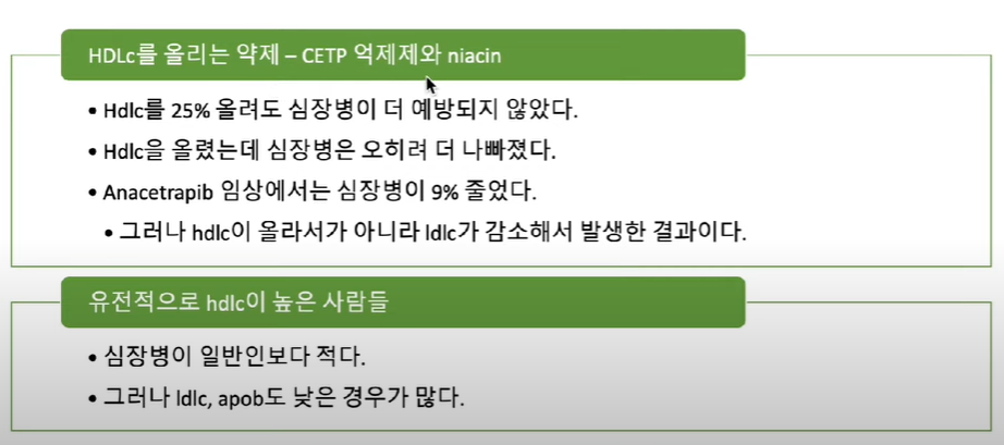 이러한 이유들로 HDL을 올리는 CETP 억제제는 현재 사용되지 않는다. (anacetrapib)