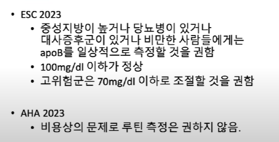 유럽에서는 apoB를 100mg/dL, 고위험군은 70mg/dL 이하로 조절할 것을 권함