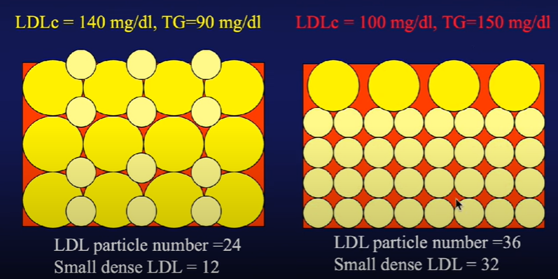 TG가 200이상 증가할 경우 LDL은 적게 나오지만 TG-rich remnant particle은 늘어난다.