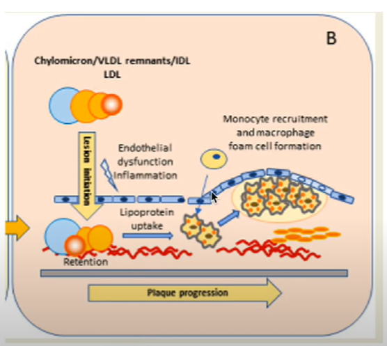 1: 지단백 침투 (80um 이하인 chylomicron, VLDL remnants, LDL 만 들어갈 수 있다)