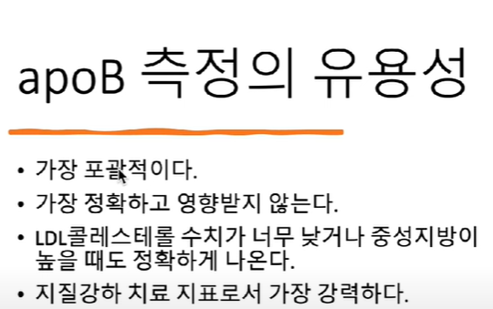 스타틴 또한 particle의 개수를 줄여주어서 의미가 있고, apoB가 particle을 잴 수 있기 때문에 의미 있다.