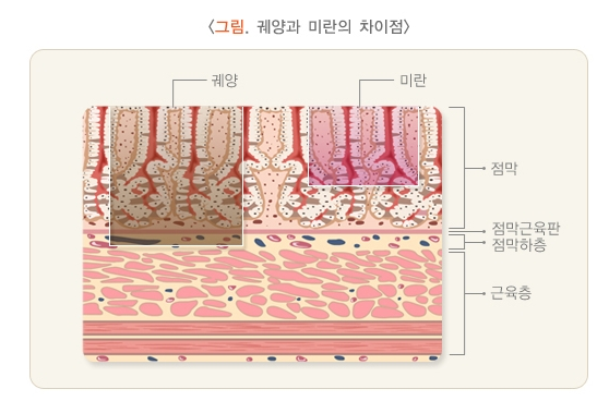 위, 십이지장의 점막이 일정 수준 이상으로 (근육층까지) 손상 받은 것을 의미하죠.