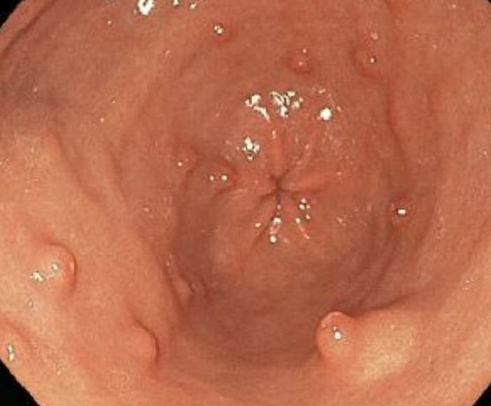 암으로 진행하는 경우가 드물고 1cm 이상 클 경우 일부 악성 가능성이 있어 내시경으로 절제합니다.